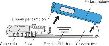 Il portacampione trasferisce il campione sulle strisce del test, che contengono anticorpi specifici per droga.